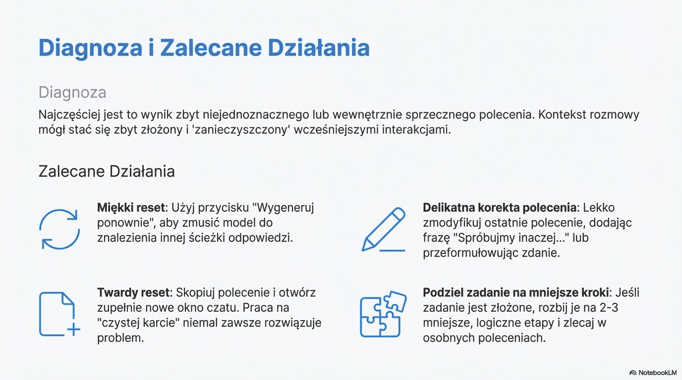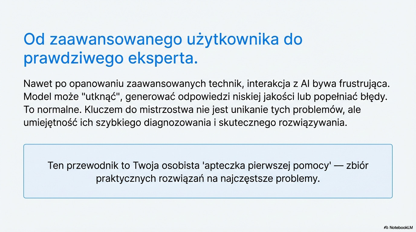 Treści zawarte w poradniku nie stanowią profesjonalnej porady prawnej, finansowej, medycznej ani żadnej innej formy doradztwa specjalistycznego i nie powinny być jako takie traktowane. Zaleca się, aby wszelkie kluczowe informacje, dane i fakty generowane przez modele AI były weryfikowane w niezależnych, wiarygodnych źródłach. Korzystanie z tego poradnika jest równoznaczne z akceptacją powyższych warunków.