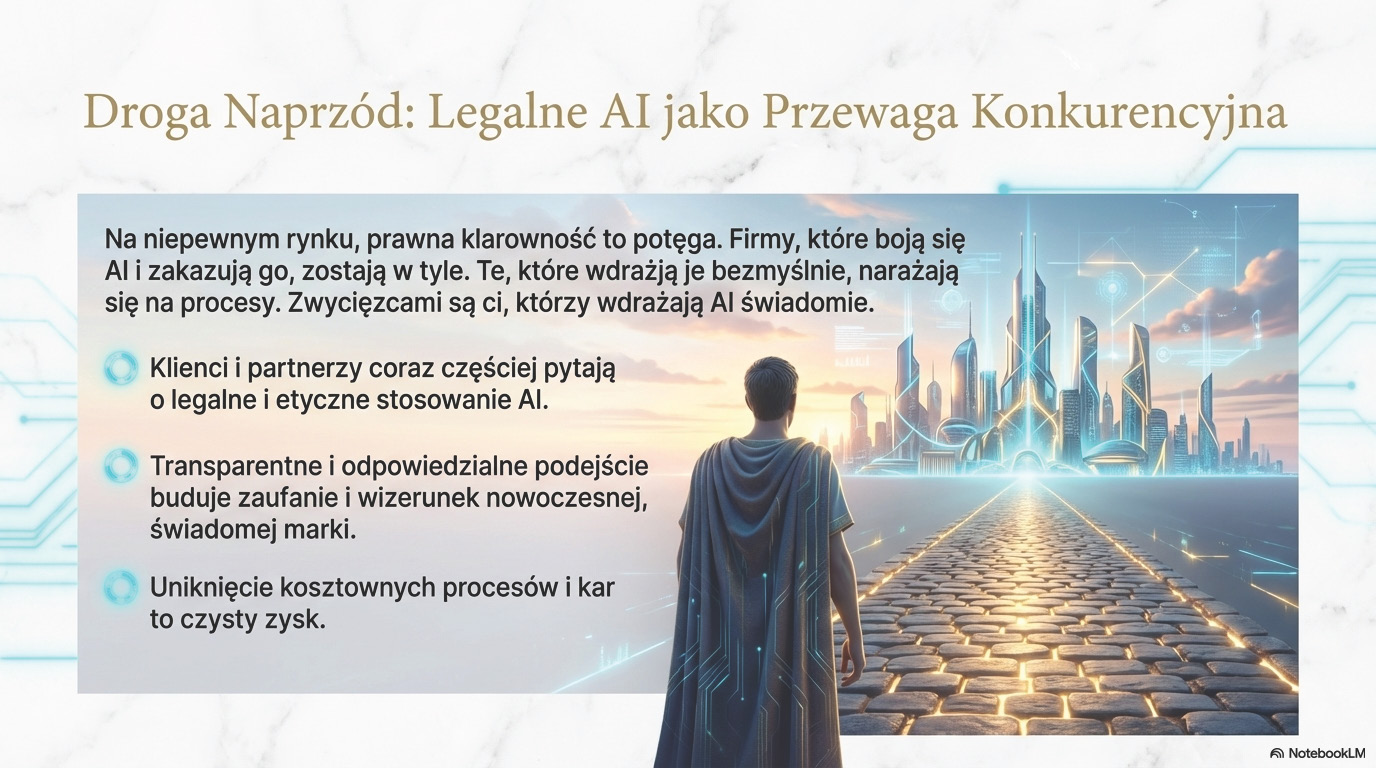 Przepisy dotyczące AI będą ewoluować, a firmy, które już dziś wdrożą solidne fundamenty oparte na etyce i zgodności z prawem, zbudują trwałą przewagę konkurencyjną. W erze nasycenia rynku treściami generowanymi przez AI, zdolność do wykazania, że firma korzysta z tej technologii w sposób odpowiedzialny i transparentny, staje się potężnym czynnikiem różnicującym i kluczową walutą w walce o zaufanie klientów.
