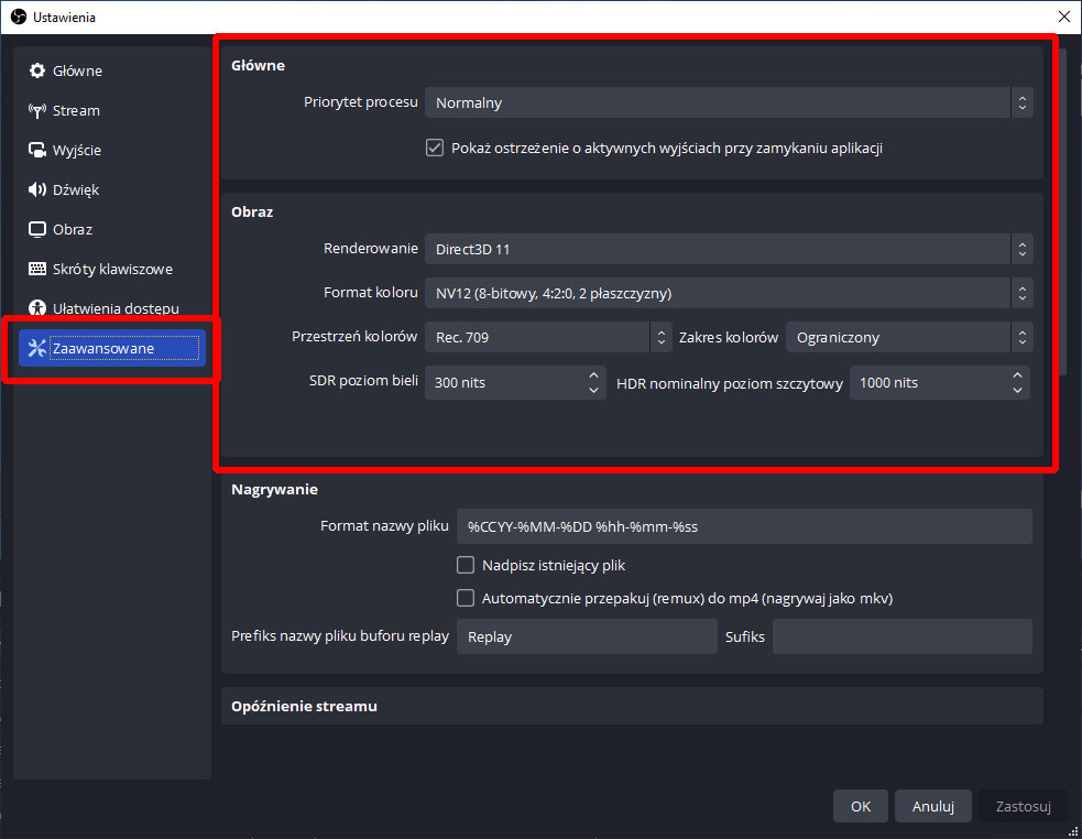Ustawienia OBS - Nagrywanie