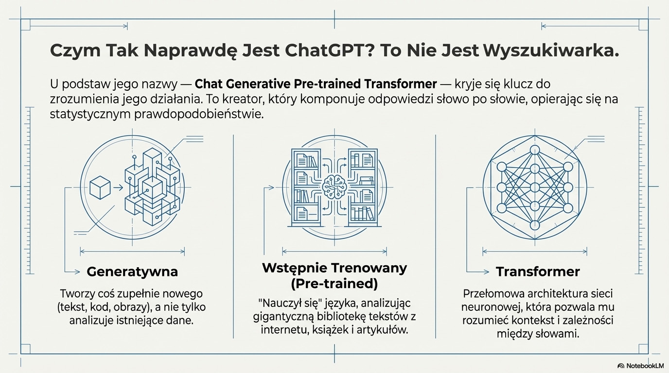 ChatGPT nie jest prostą wyszukiwarką ani encyklopedią. To potężne, kreatywne narzędzie, które analizuje nasze intencje i na tej podstawie generuje oryginalne treści. Zrozumienie, że mamy do czynienia z generatywnym modelem językowym, a nie wszechwiedzącą wyrocznią, jest pierwszym i najważniejszym krokiem do świadomego i efektywnego wykorzystania jego niezwykłych możliwości.
