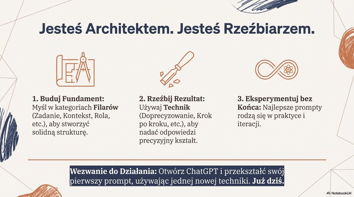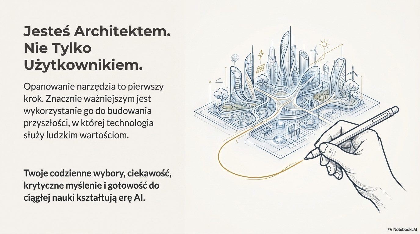 Zdobycie tej umiejętności to inwestycja w przyszłość. W erze, w której AI będzie coraz głębiej integrować się z naszym otoczeniem, osoby, które potrafią efektywnie komunikować się z tą technologią, zyskają ogromną przewagę. To szansa na zwiększenie produktywności, automatyzację żmudnych procesów i skupienie się na tym, co w ludzkiej pracy najcenniejsze - strategicznym myśleniu, innowacyjności i empatii. To także szansa, której nie można przespać, aby stać się świadomym uczestnikiem i beneficjentem nadchodzących zmian, a nie tylko ich biernym obserwatorem. Niniejszy przewodnik został stworzony, aby poprowadzić Cię krok po kroku na tej drodze - od pierwszych, prostych poleceń, aż po mistrzostwo w konwersacji z AI.